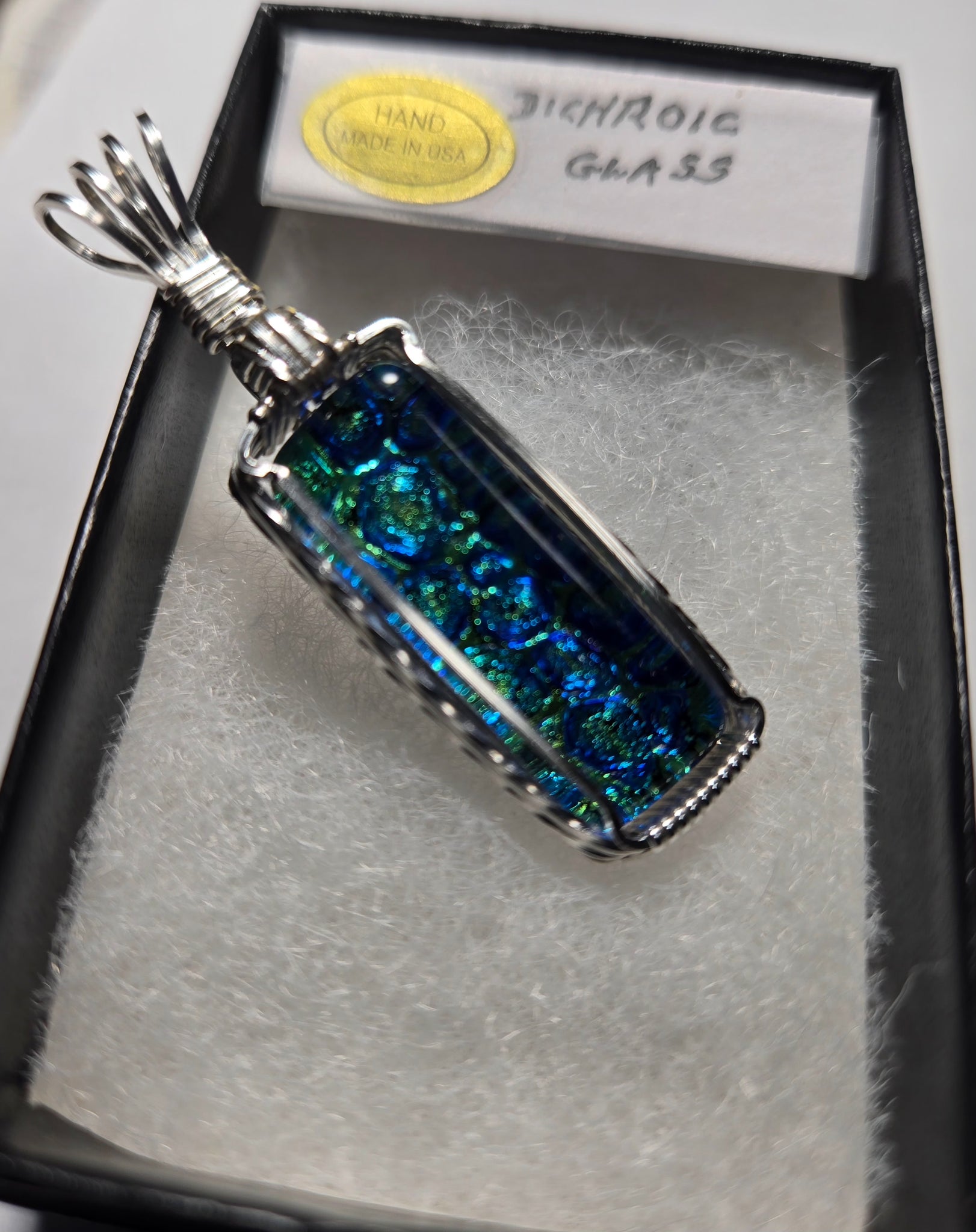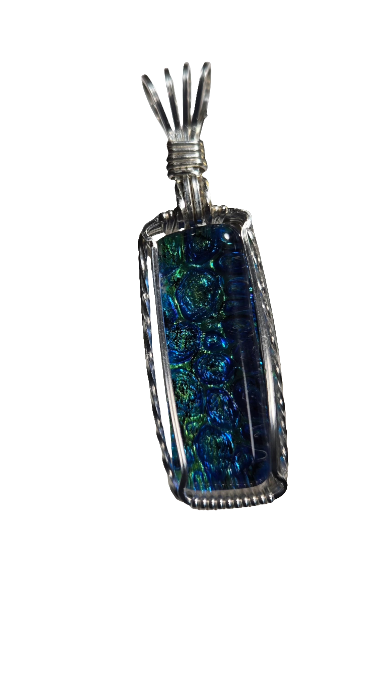 Custom Wire Wrapped Dichroic Glass Necklace/Pendant Sterling Silver. 935