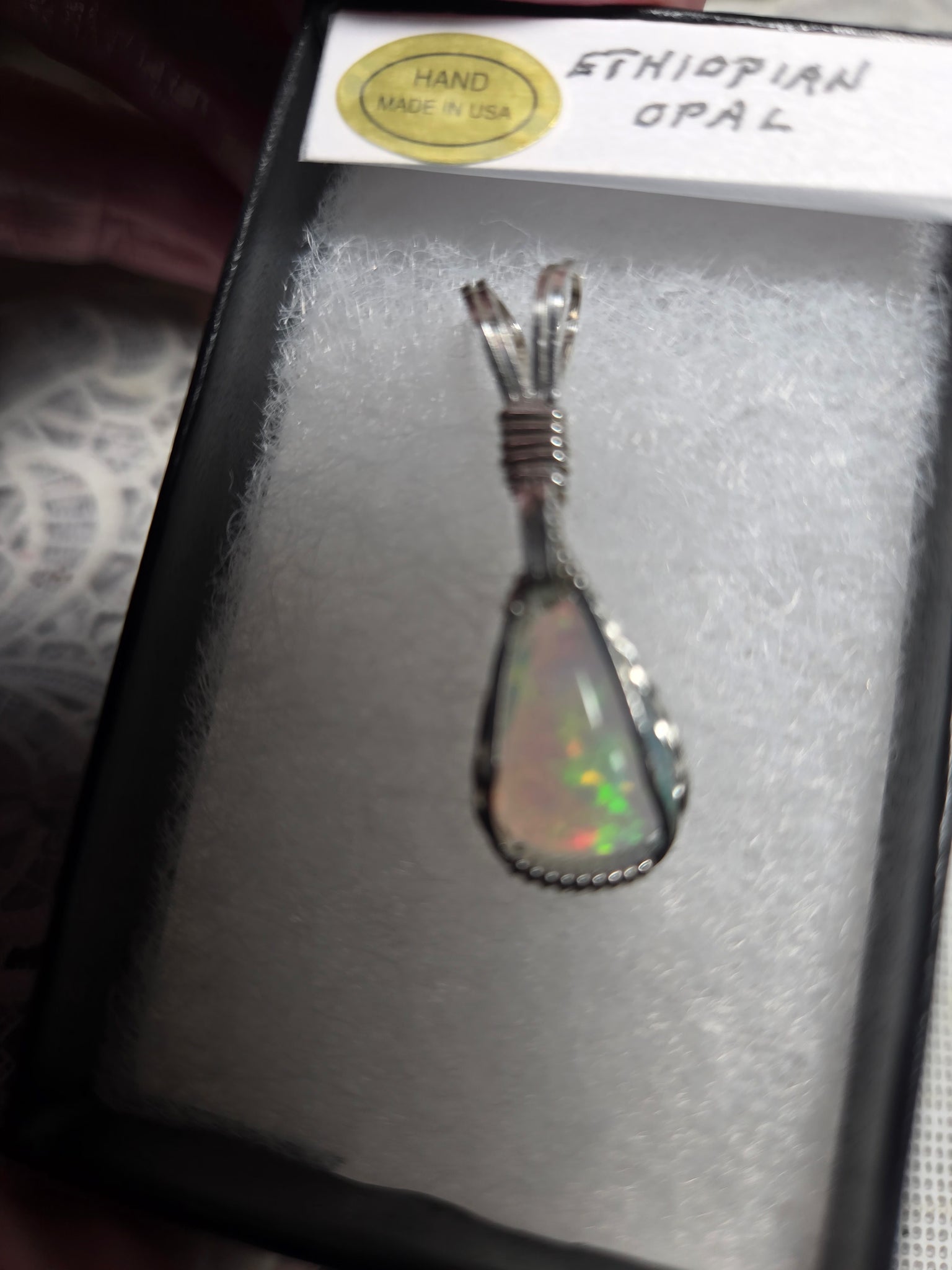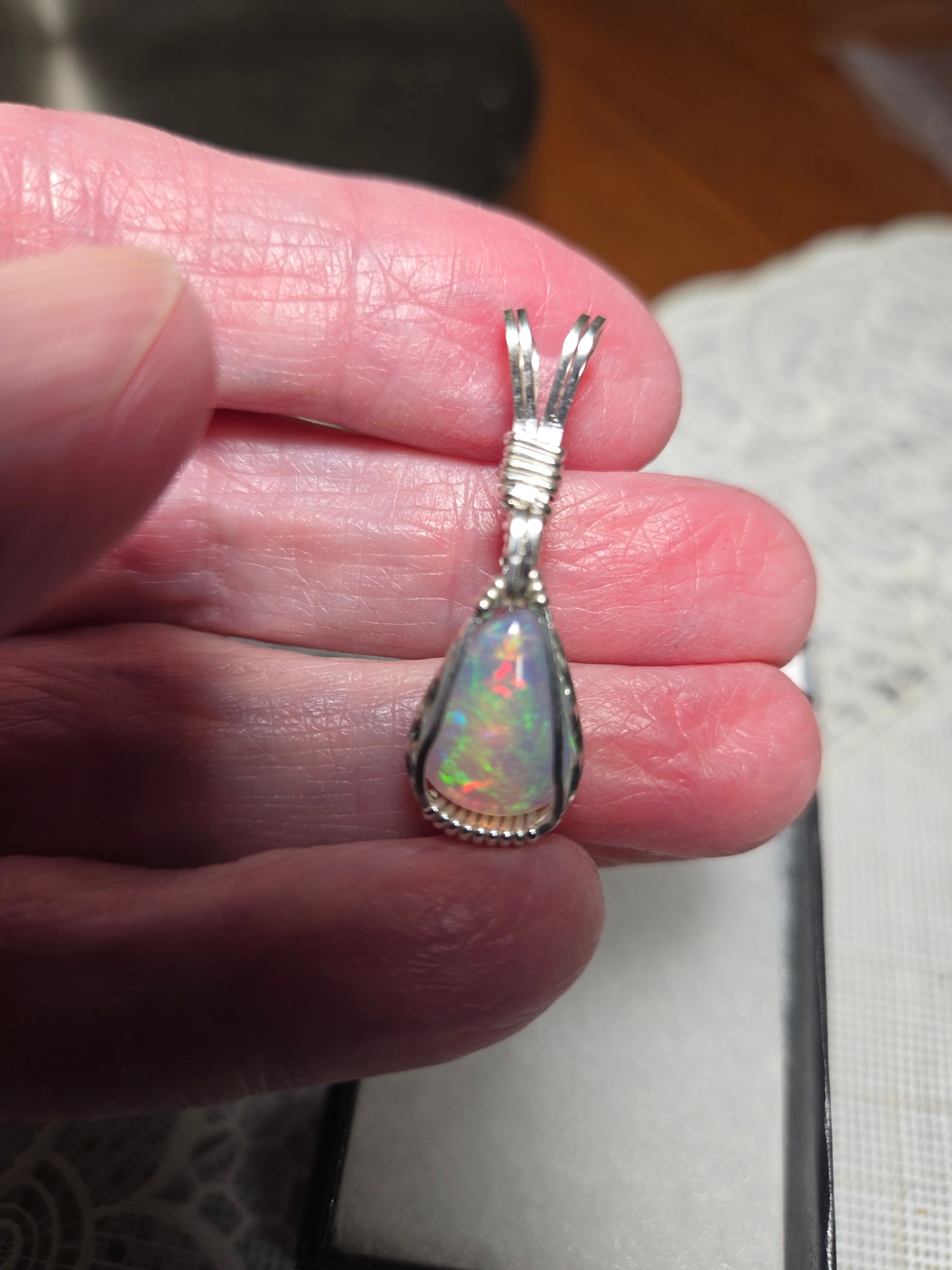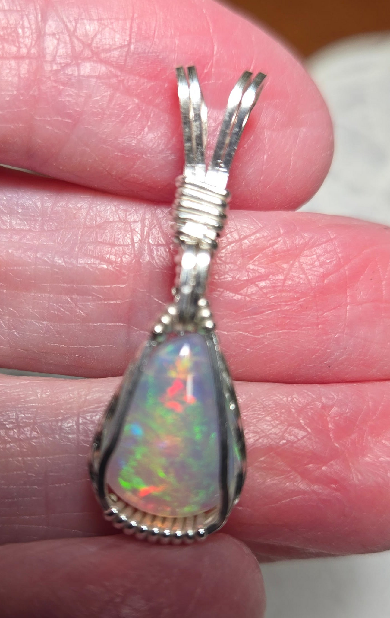 Custom Wire Wrapped Ethiopian Opal Necklace/Pendant Sterling Silver .935