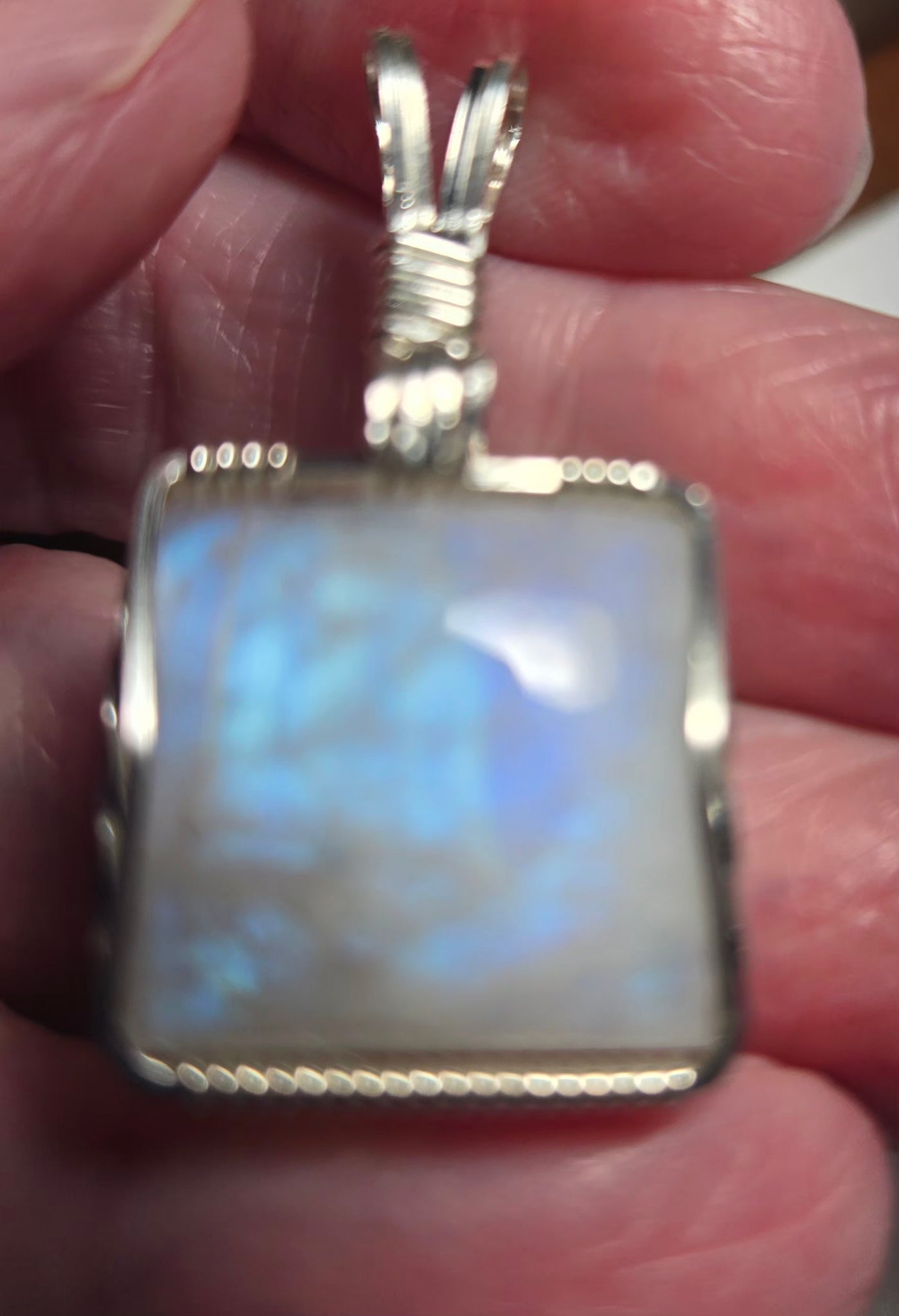 Custom Wire Wrapped Moonstone Necklace/Pendant Sterling Silver .935