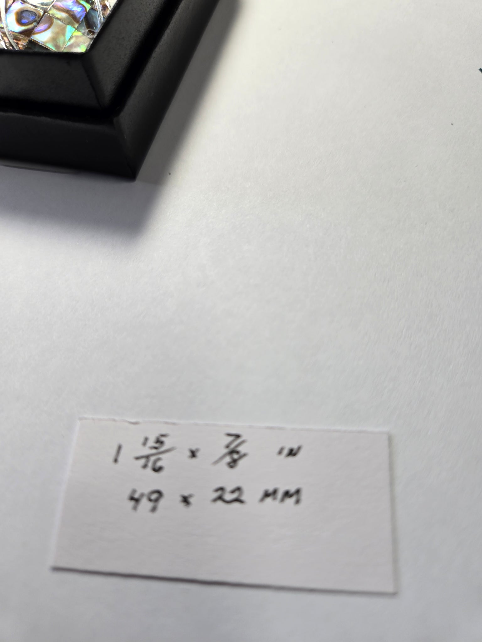 The color in the paua shell changes when viewed at different angles. This iridescence, similar to that of Mother of Pearl shell, but far more brilliant, is what makes paua shell so amazing as a gem material for use in jewelry. It is truly one of nature's marvels. Each shell is different in its color tonings, and in the patterns within the shell. The black patterns in the shell come from layers of protein that are laid down between the layers of calcium that make up the shell. The brilliant colors are from light being refracted within the crystal layers. The same effect that the iridescent color found in Opals.