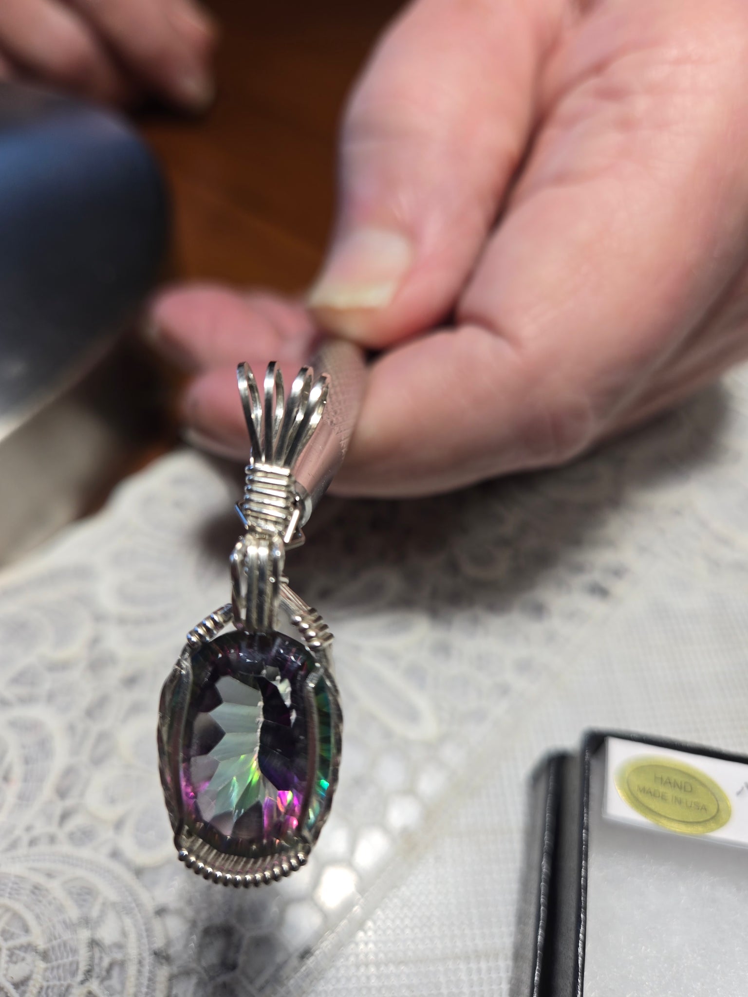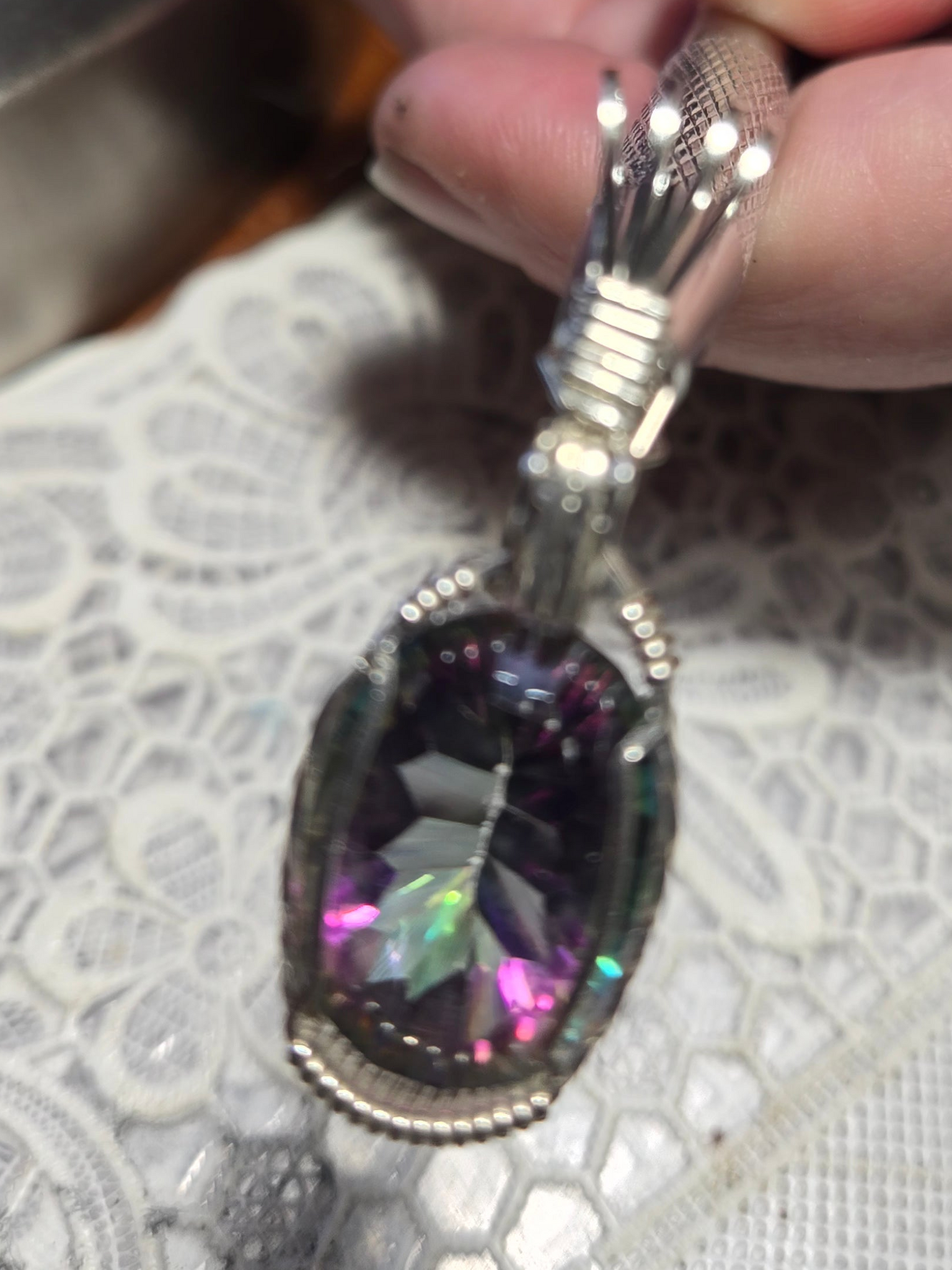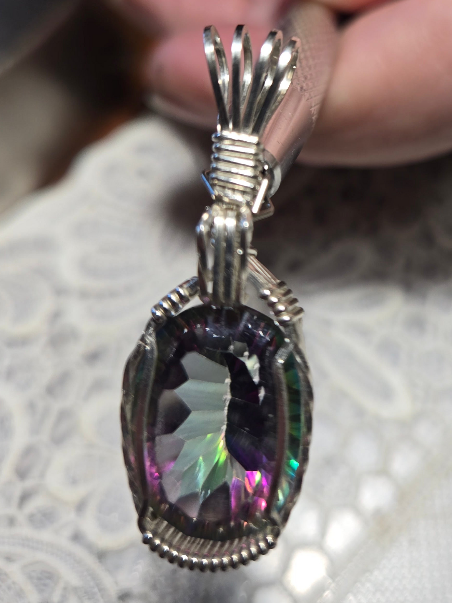 Custom Wire Wrapped Faceted Mystic Topaz Necklace/Pendant Sterling Silver .935