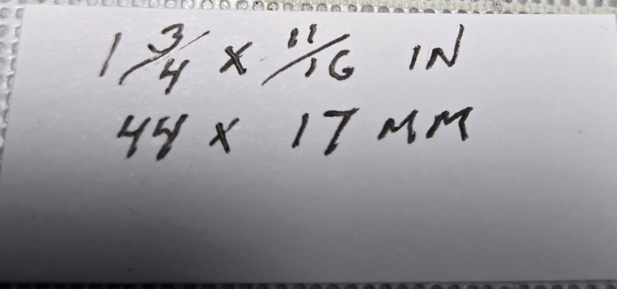 Overall size: 1 3/4 x 11/16 or 44mm x 17mm