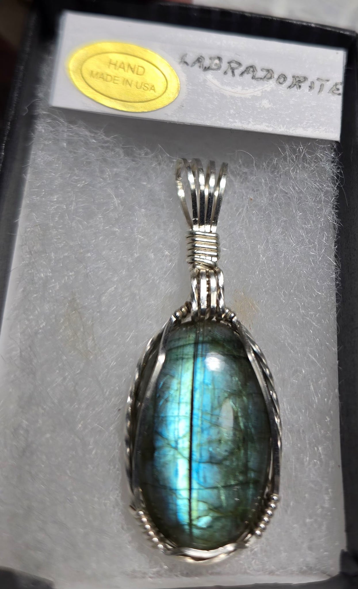 Custom Wire Wrapped Labradorite Necklace/Pendant Sterling Silver .935