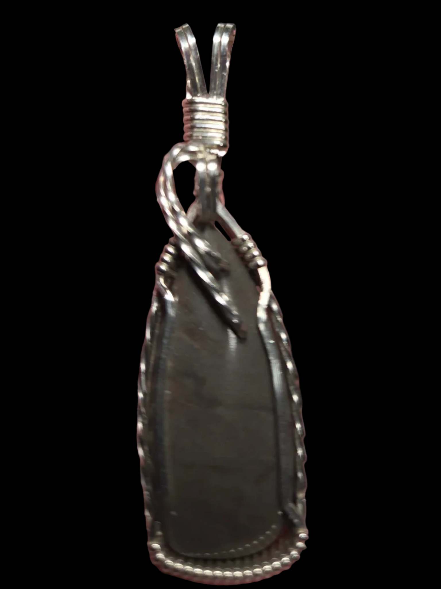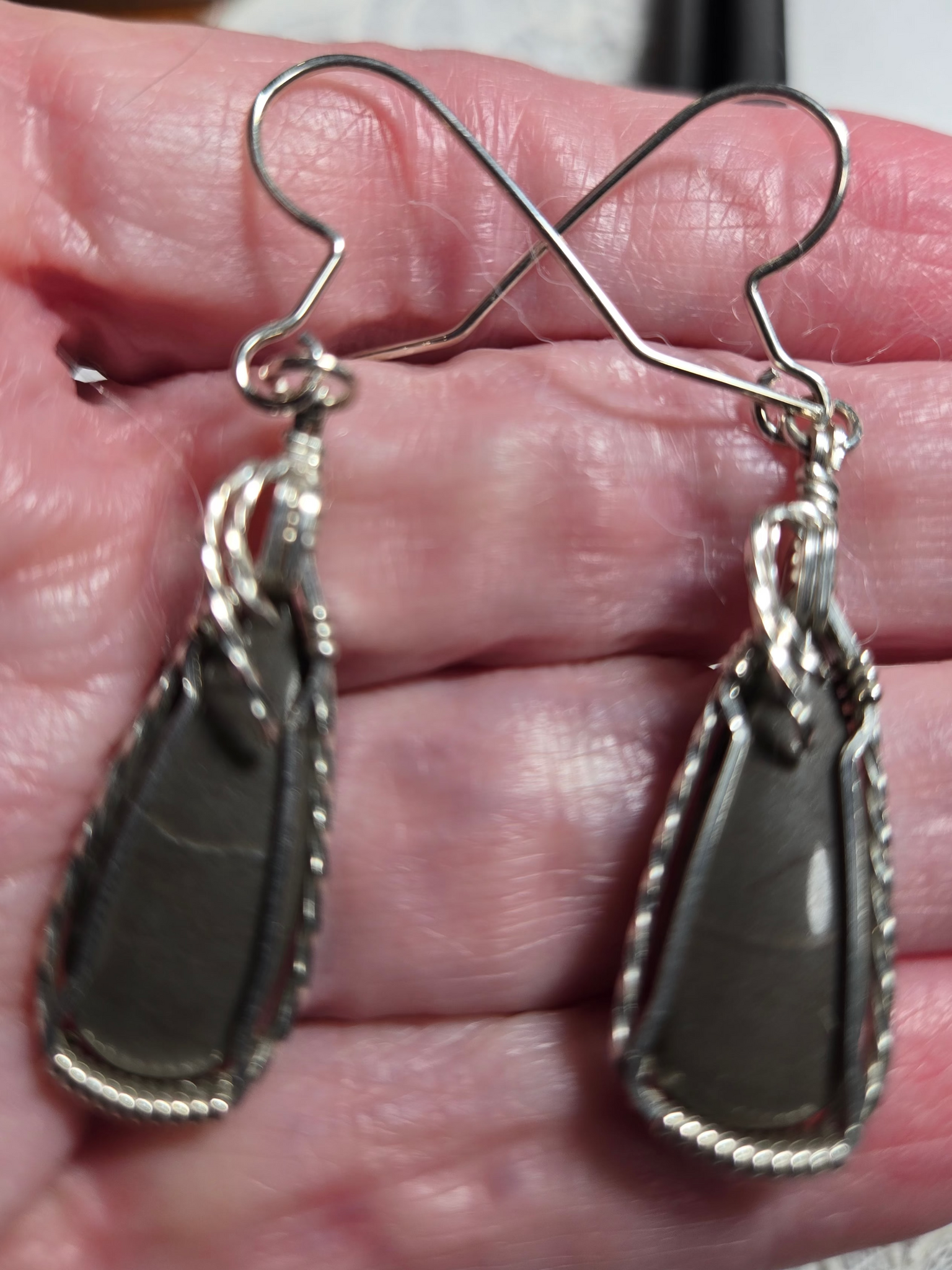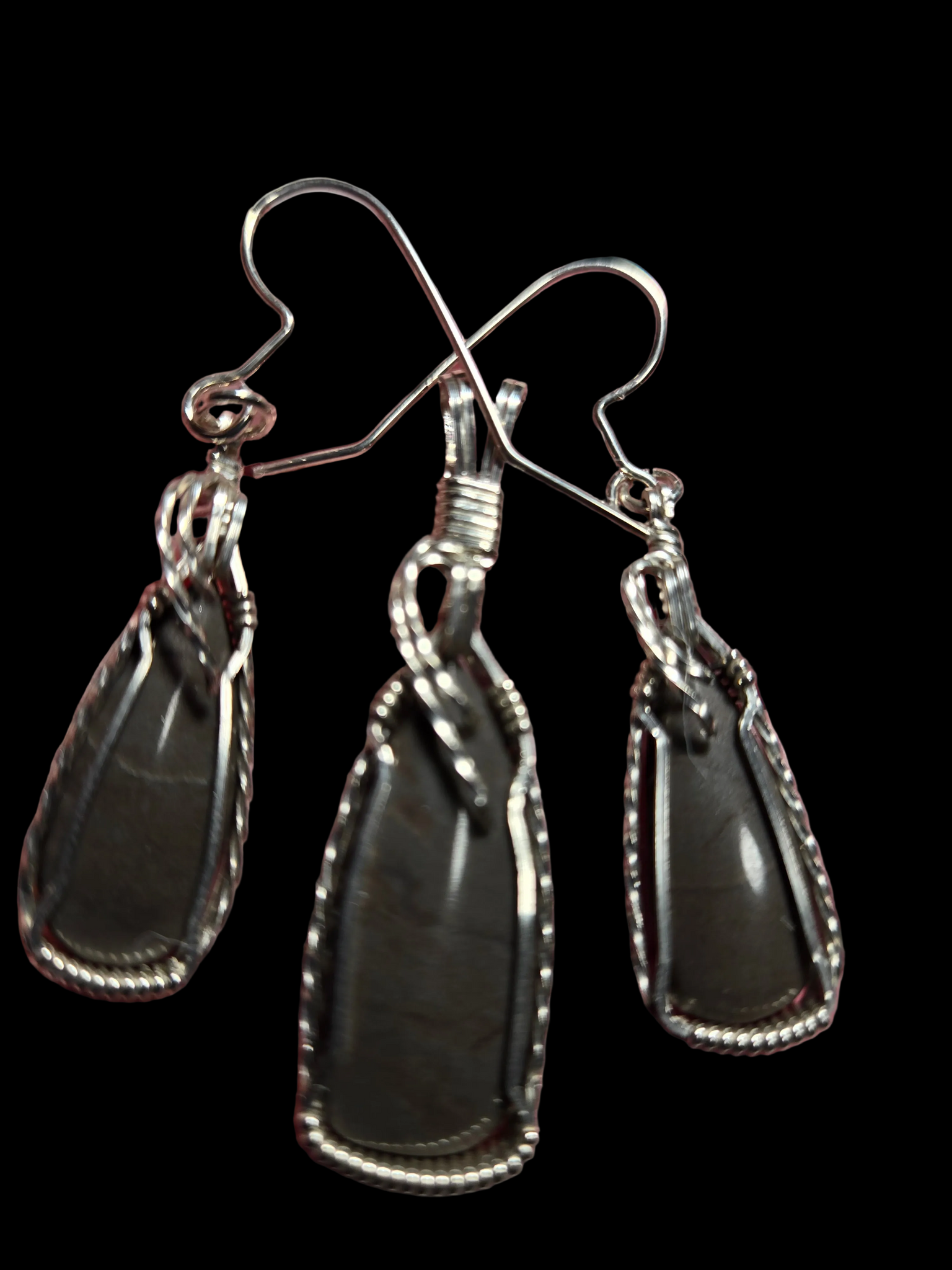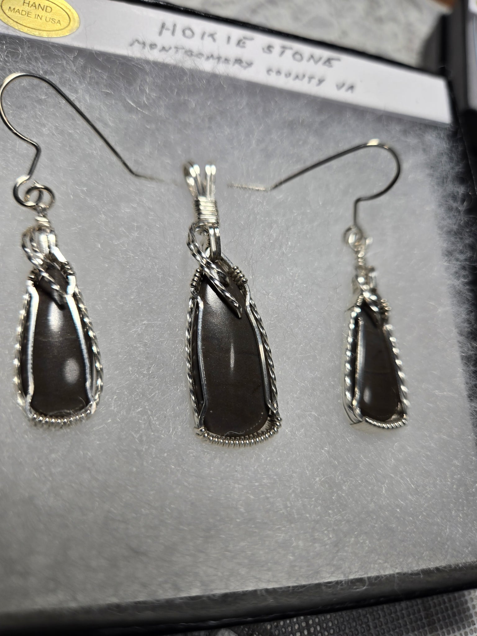 Custom Cut Polished & Wire Wrapped Virginia Tech Gray Hokie Stone Set: Necklace/Pendant/Earrings Sterling Silver .935